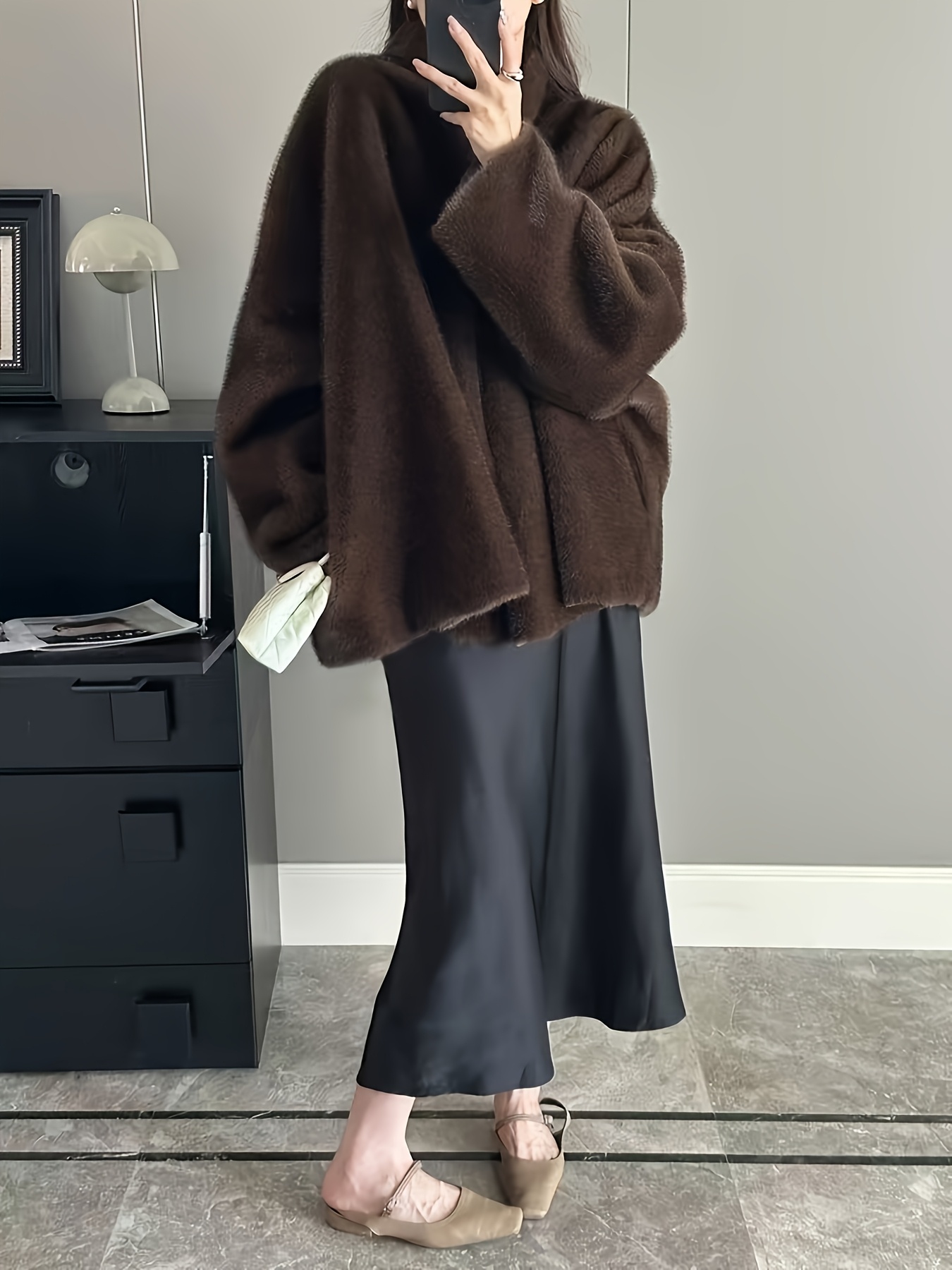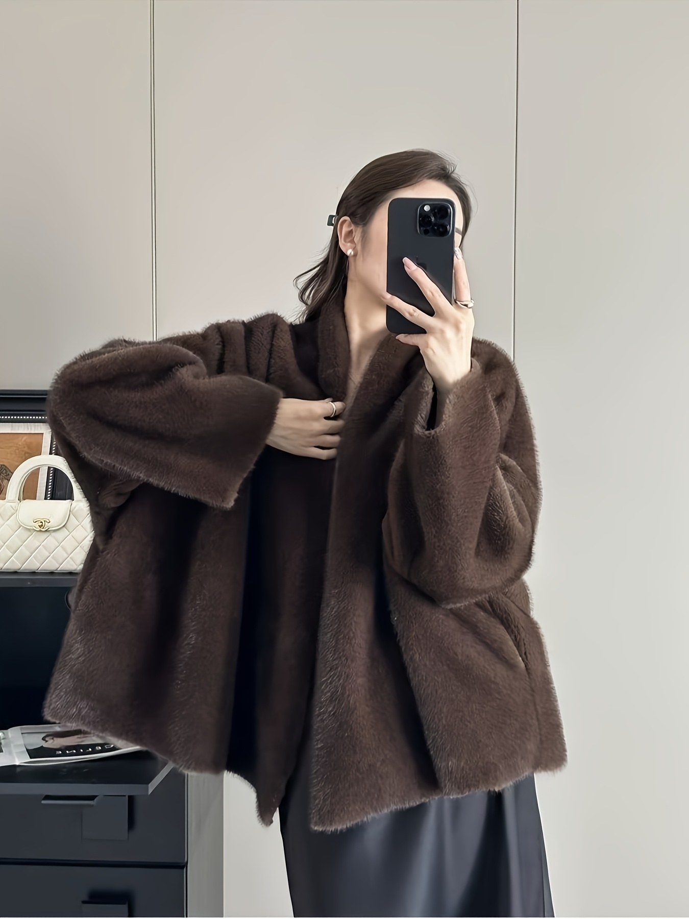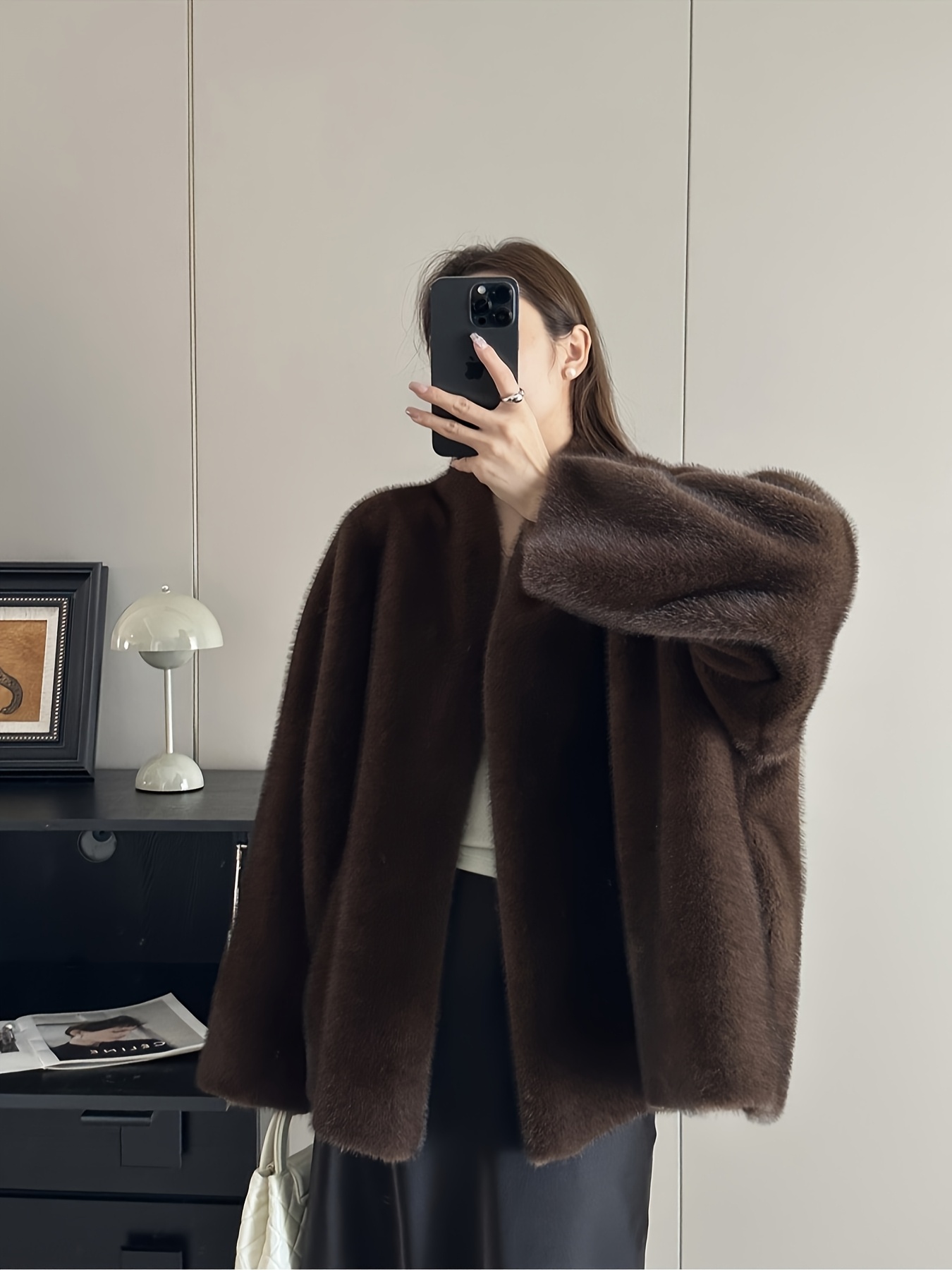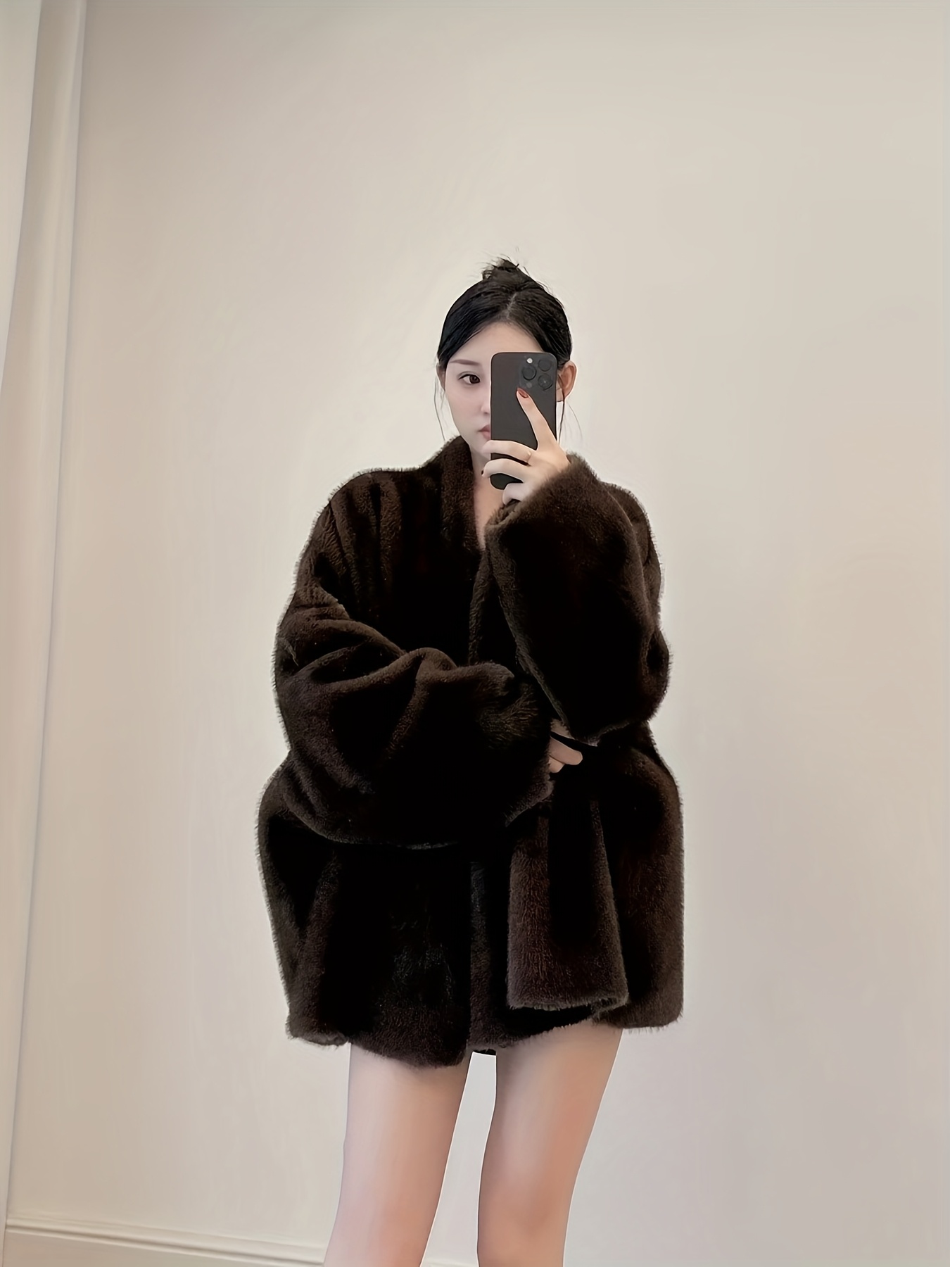 Loose, Casual, Mink-like Faux Fur Coat For Women, Perfect For Autumn And Winter. This Elegant Outerwear Is Ideal For Festive Parties And Stylish, Sophisticated Outfits.