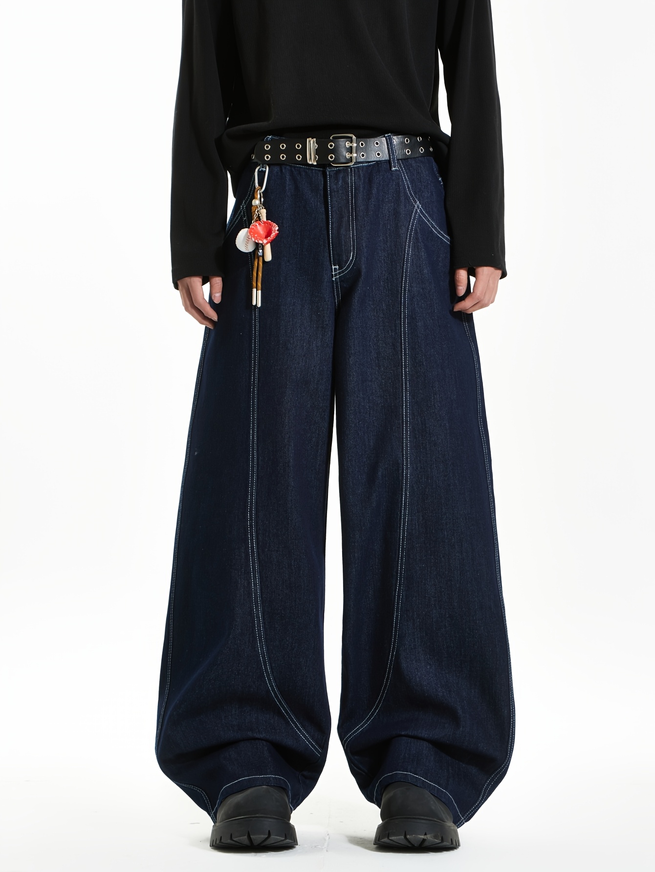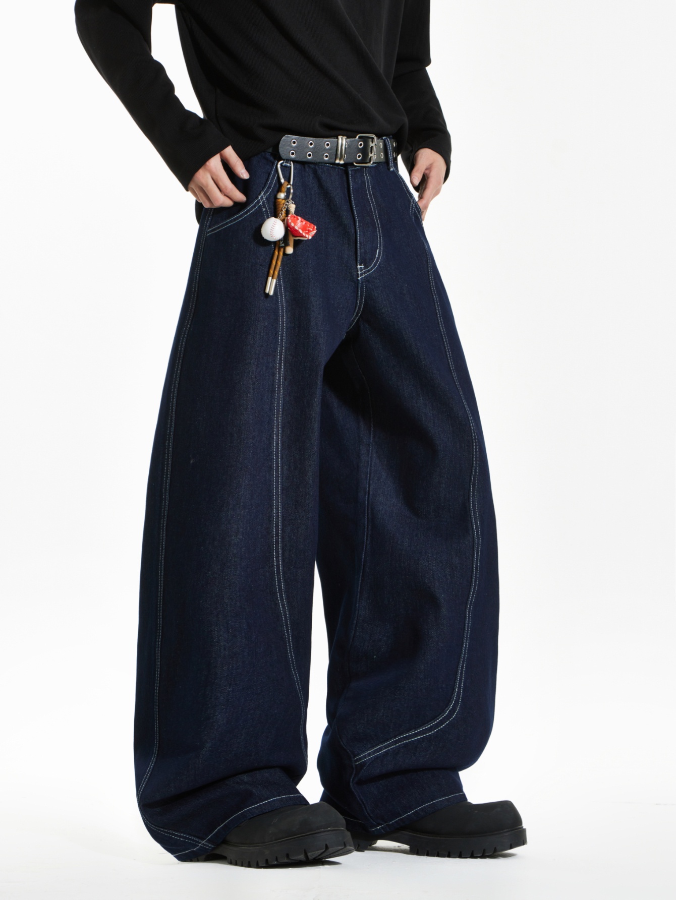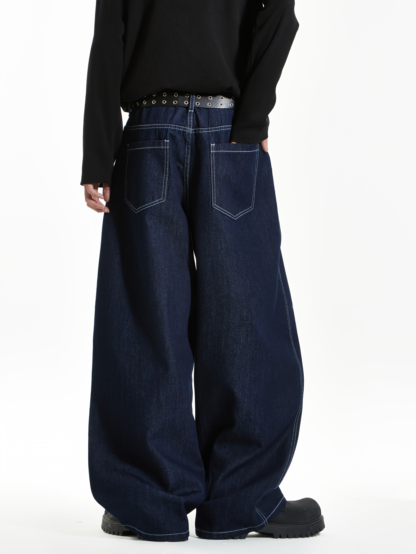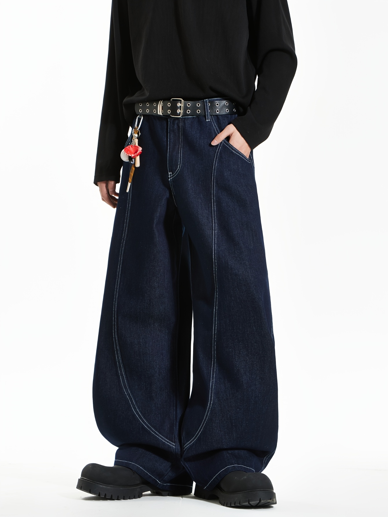 Men’s American High Street Casual Loose Jeans, Fashionable And Simple Line Casual Jeans, All Seasons (without Beltu002Fwithout Hanging Decoration)