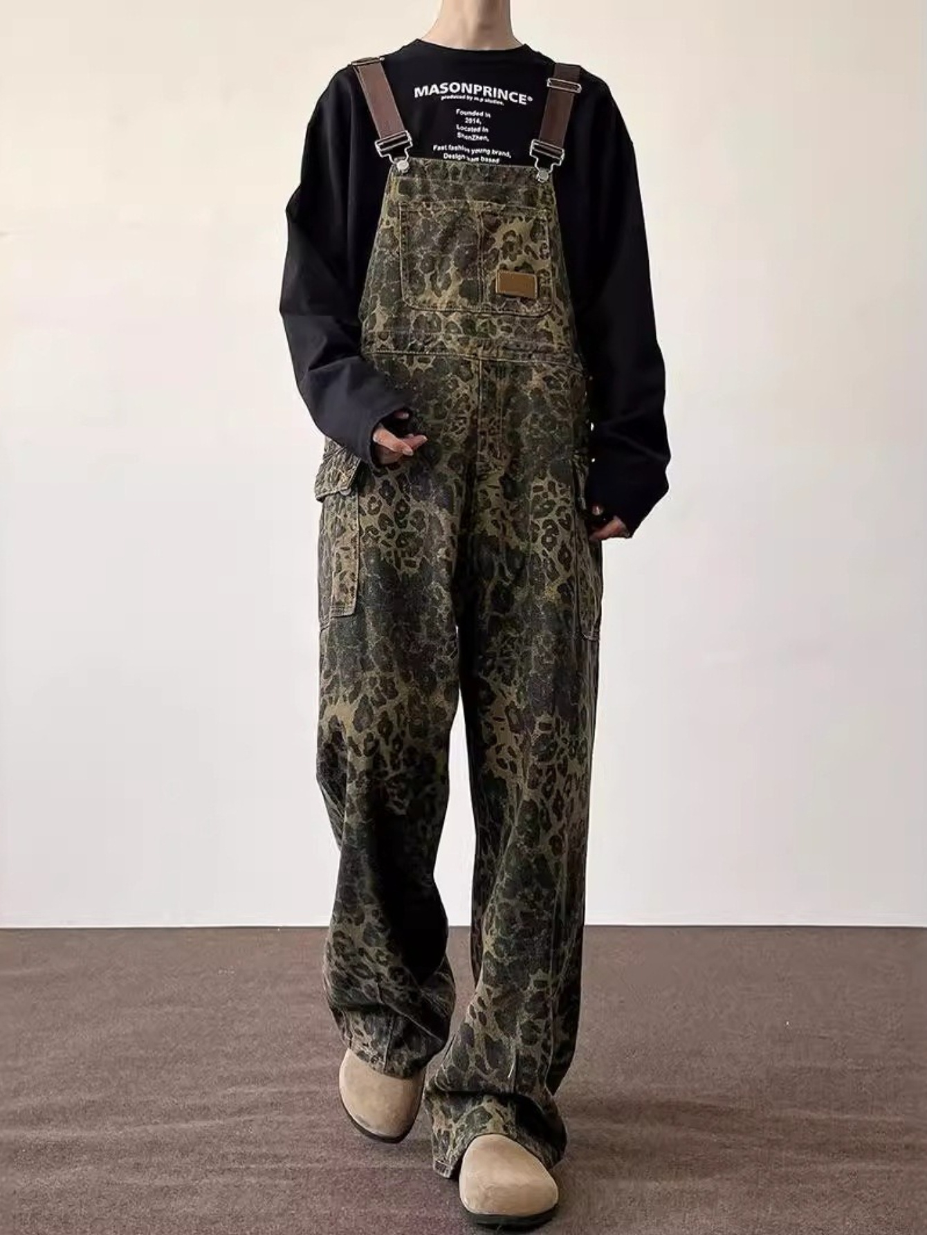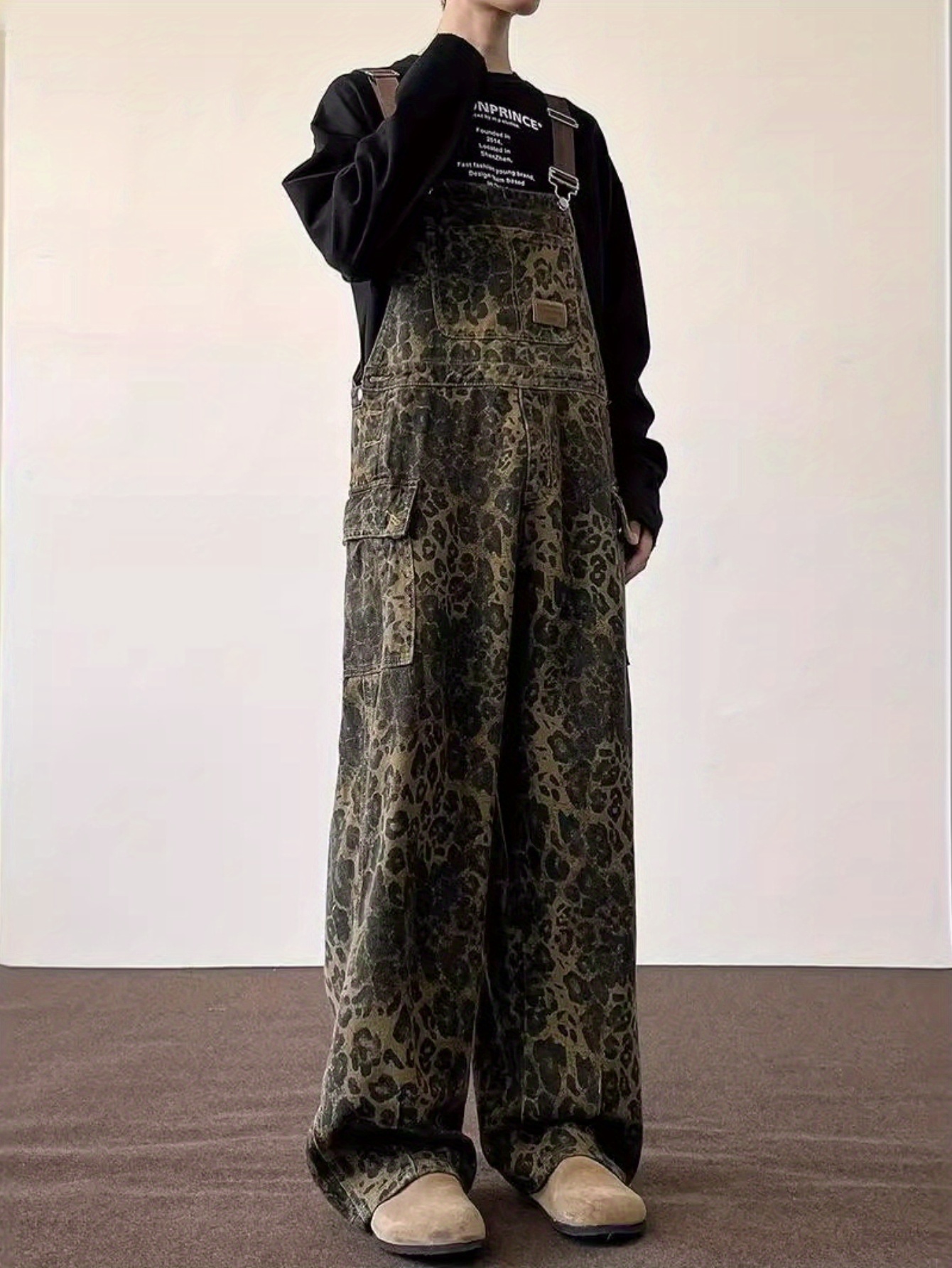 Men, UncategorizedMen’S Retro Leopard Print Overalls – Loose Fit Wide-Leg Faux Denim with Elastic Waistband, High-Stretch Fabric & Multiple Pockets, Casual Summer Outfit for Adults, Leopard Print Faux Denim, Highwaist Design, Comfortable Wear