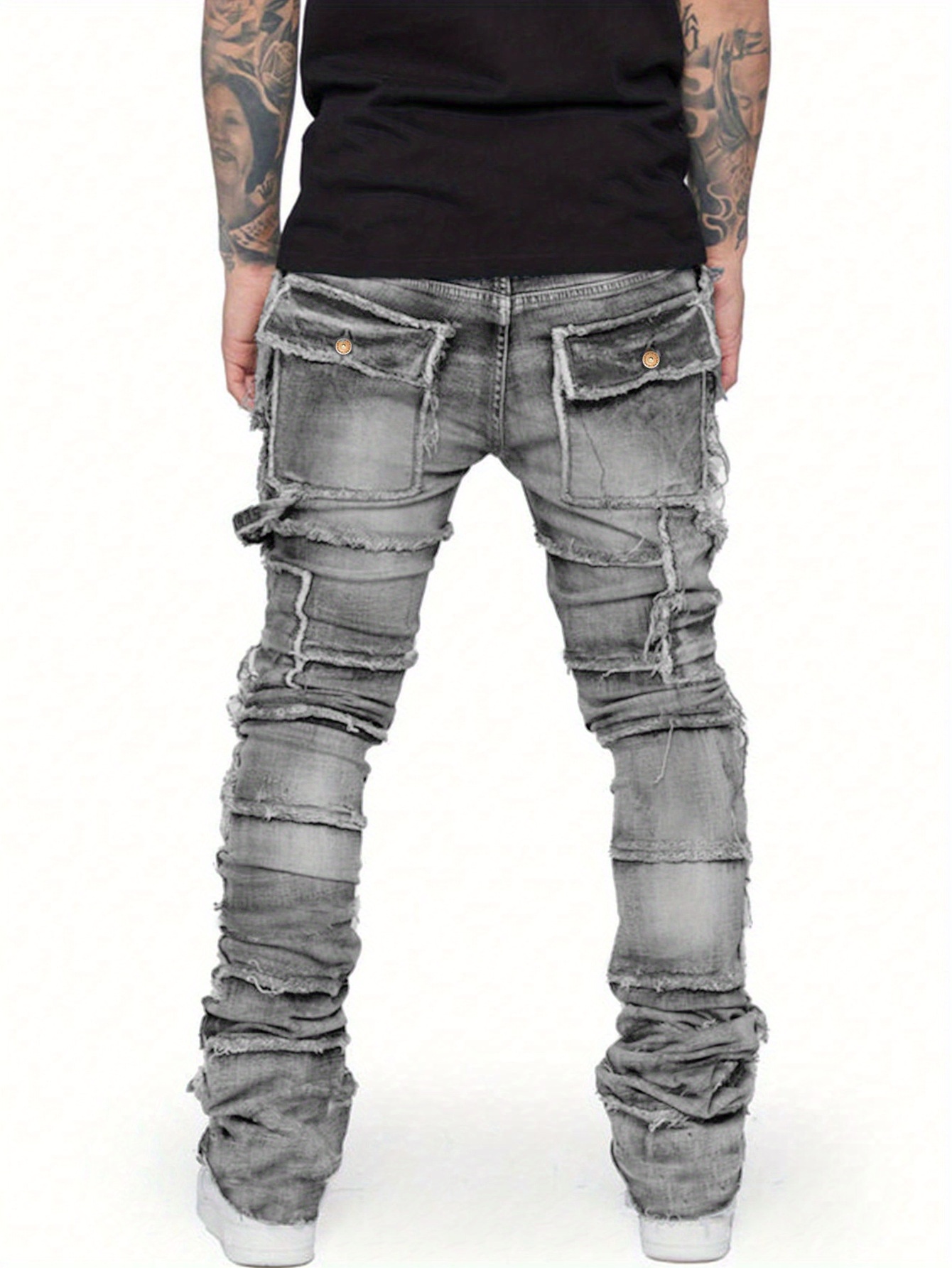 Be the first to review “Men’s Workwear-Style Grey Denim Straight-Leg Pants with Hand-Stitched Frayed Edges & Elasticated Large Pocket – Slim-Fit Streetwear Jeans with Layered Leg Cuffs, All-Season Comfort for Casual & Work Outfits (Hand Washable)” Cancel reply