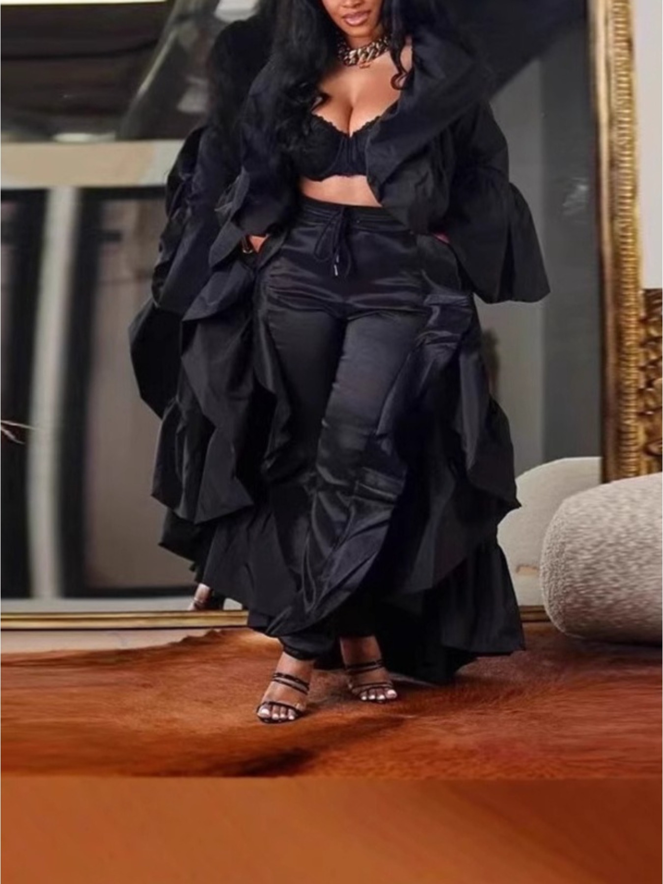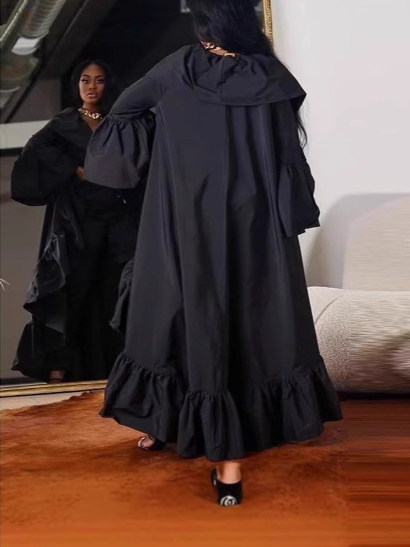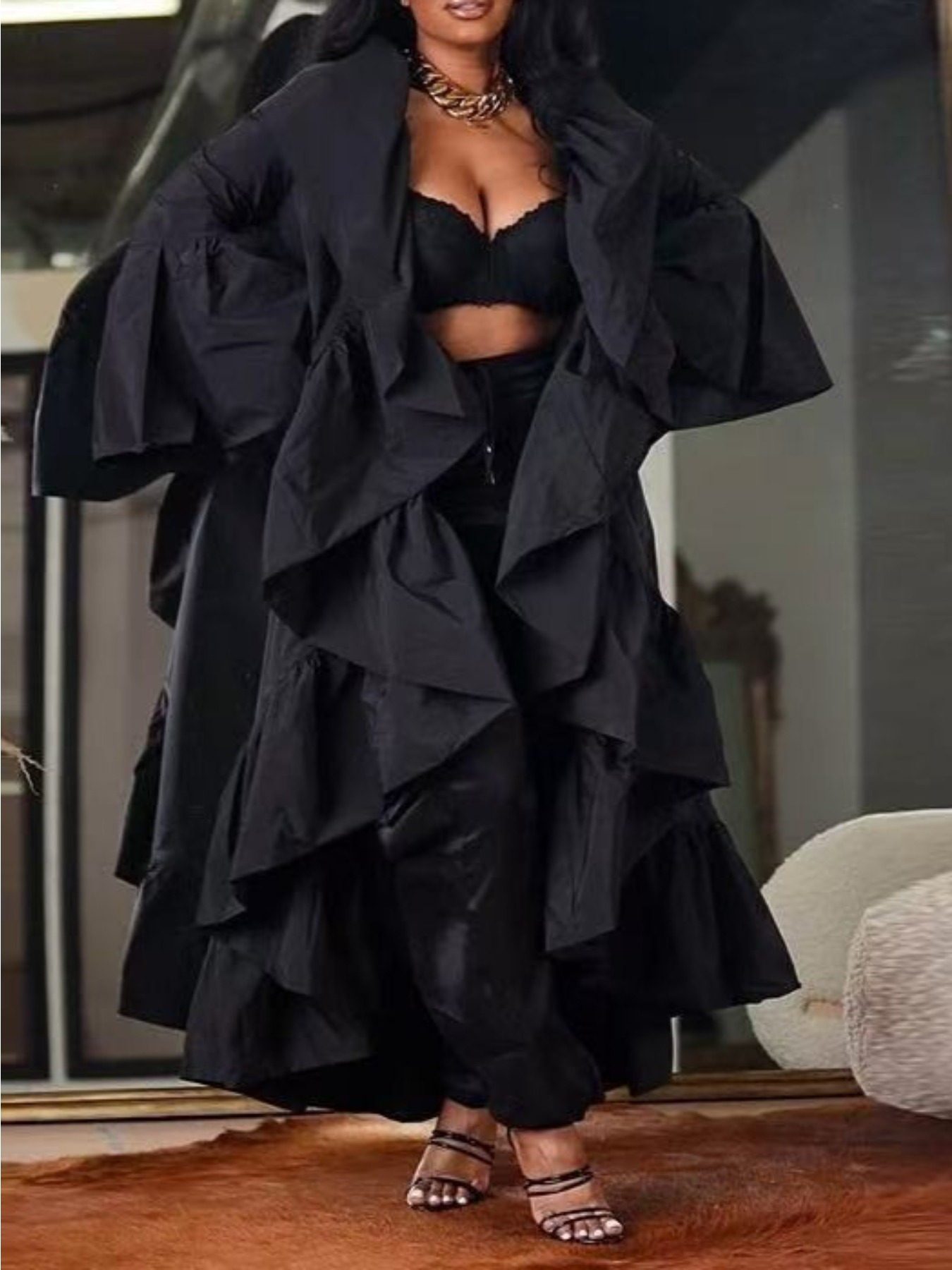 New Women’s ruffled shawl trench coat for autumn 2025 | Solid color long design, elegant and atmospheric, suitable for commuting, going out, parties and other occasions, showcasing French romantic temperament