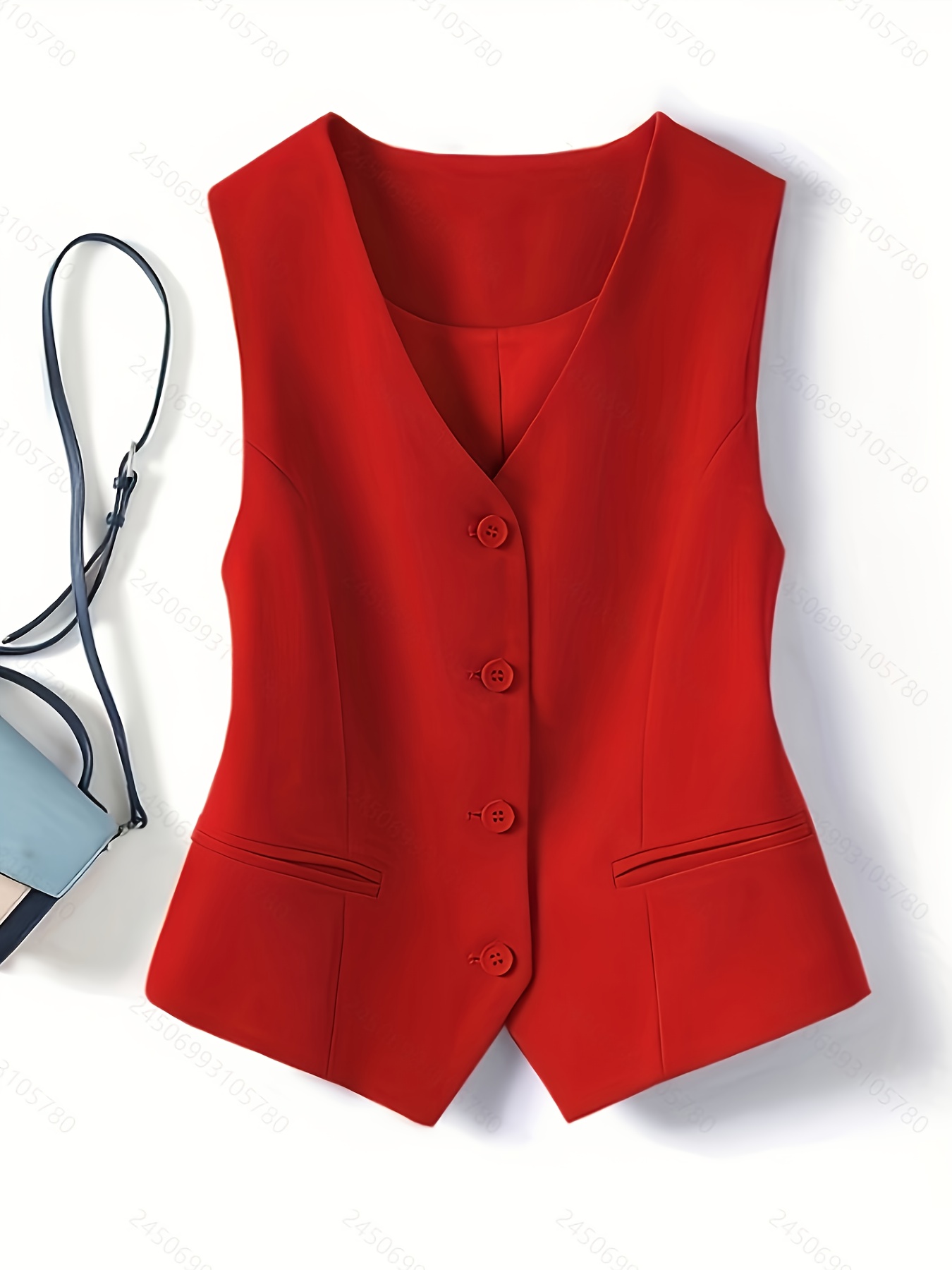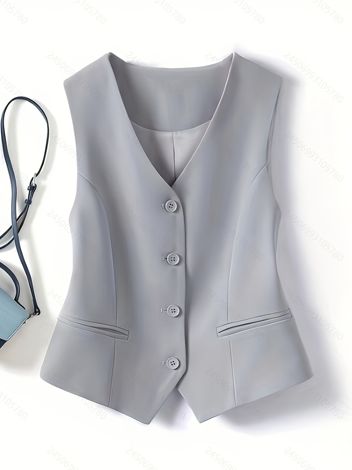 Spring And Autumn New Slim Outerwear Layered Women’s Shoulder Blue Short Vest