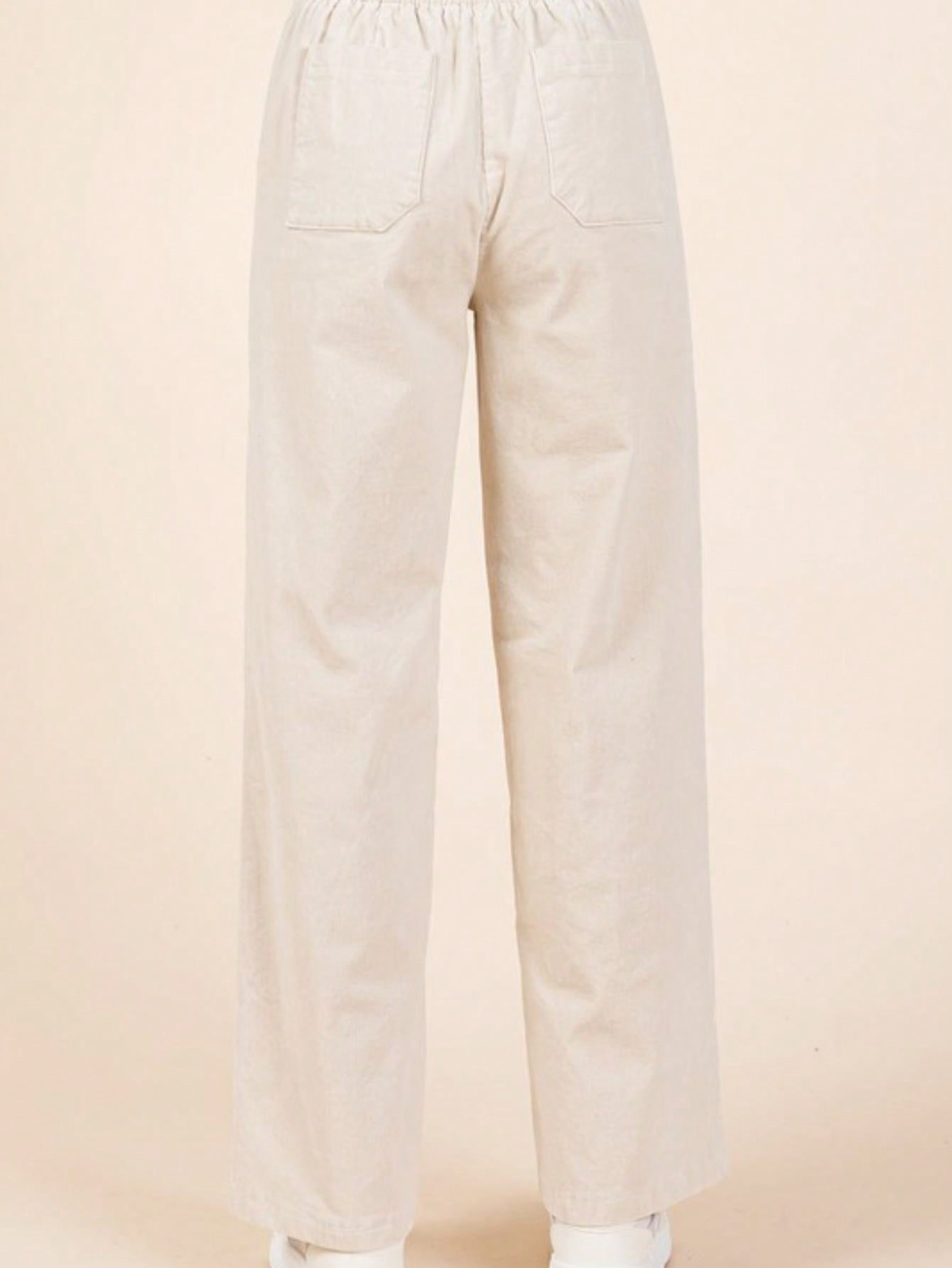 These pants are designed for comfort and style. featuring stretchy corduroy knit fabric that allows for easy movement. The elastic back waistband ensures a snug fit. while the zipper fly with button closure provides a polished look. With side and back pockets for practicality. these full-length. straight-fit semi-wide leg pants are perfect for both casual and dressier occasions. The versatile design makes them easy to pair with various tops and footwear!