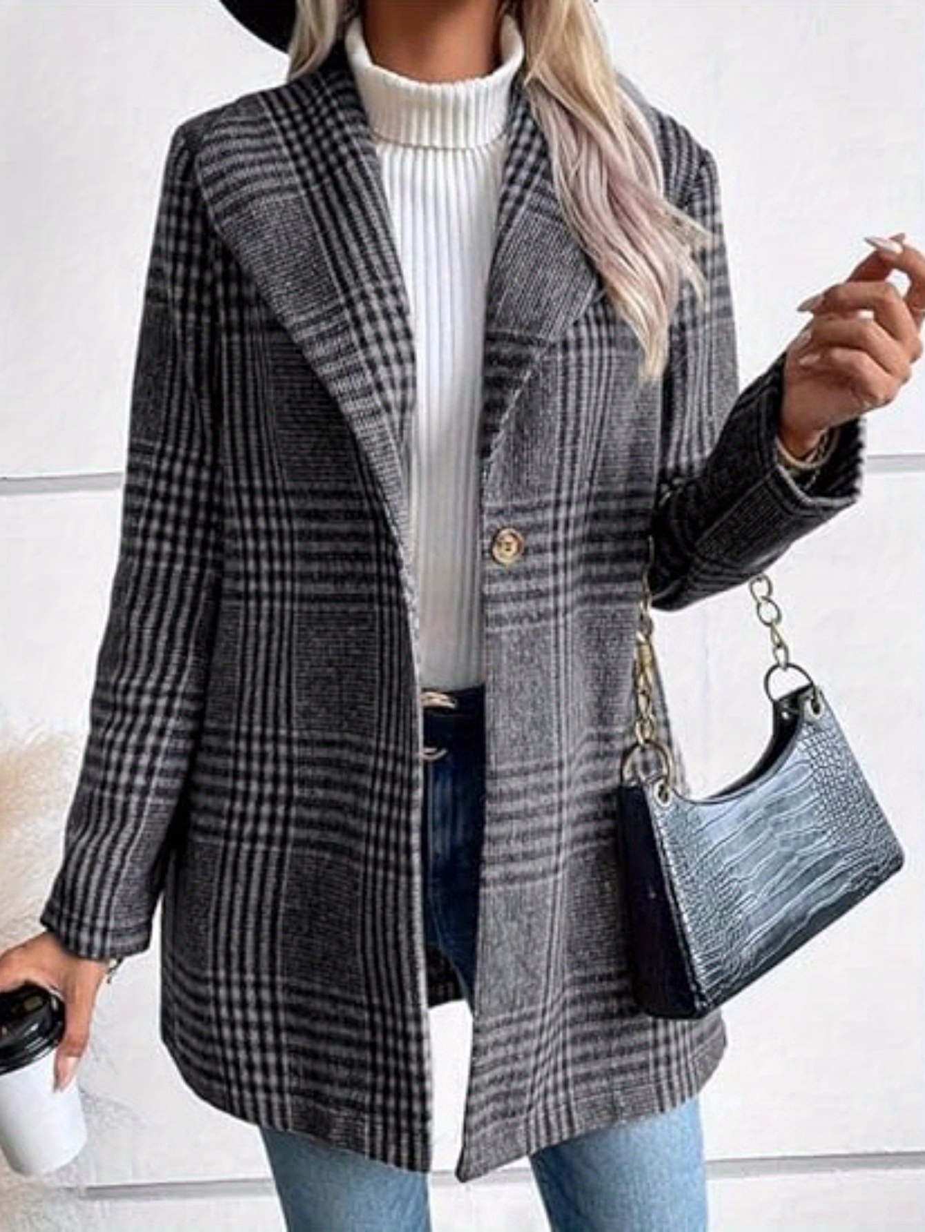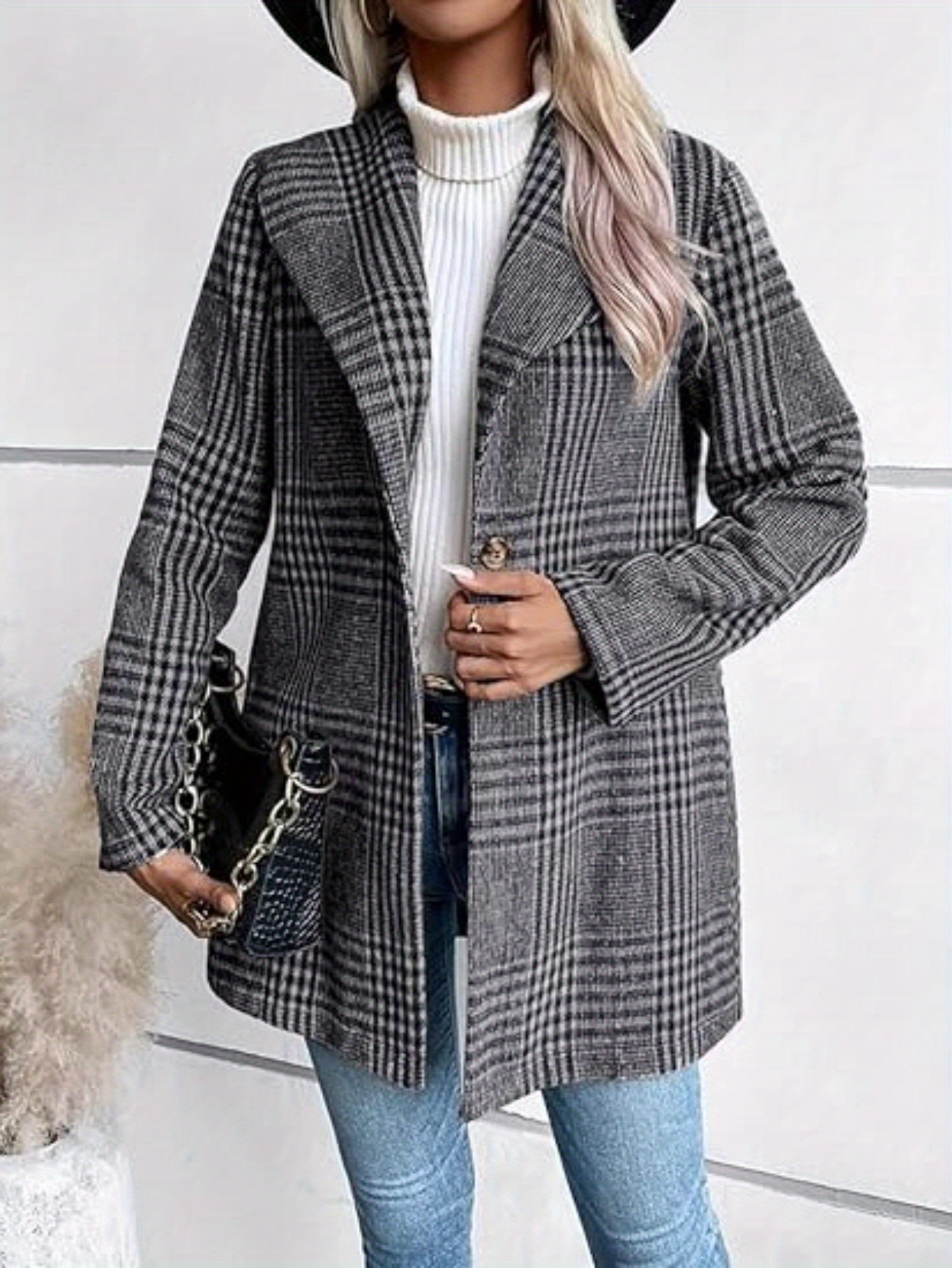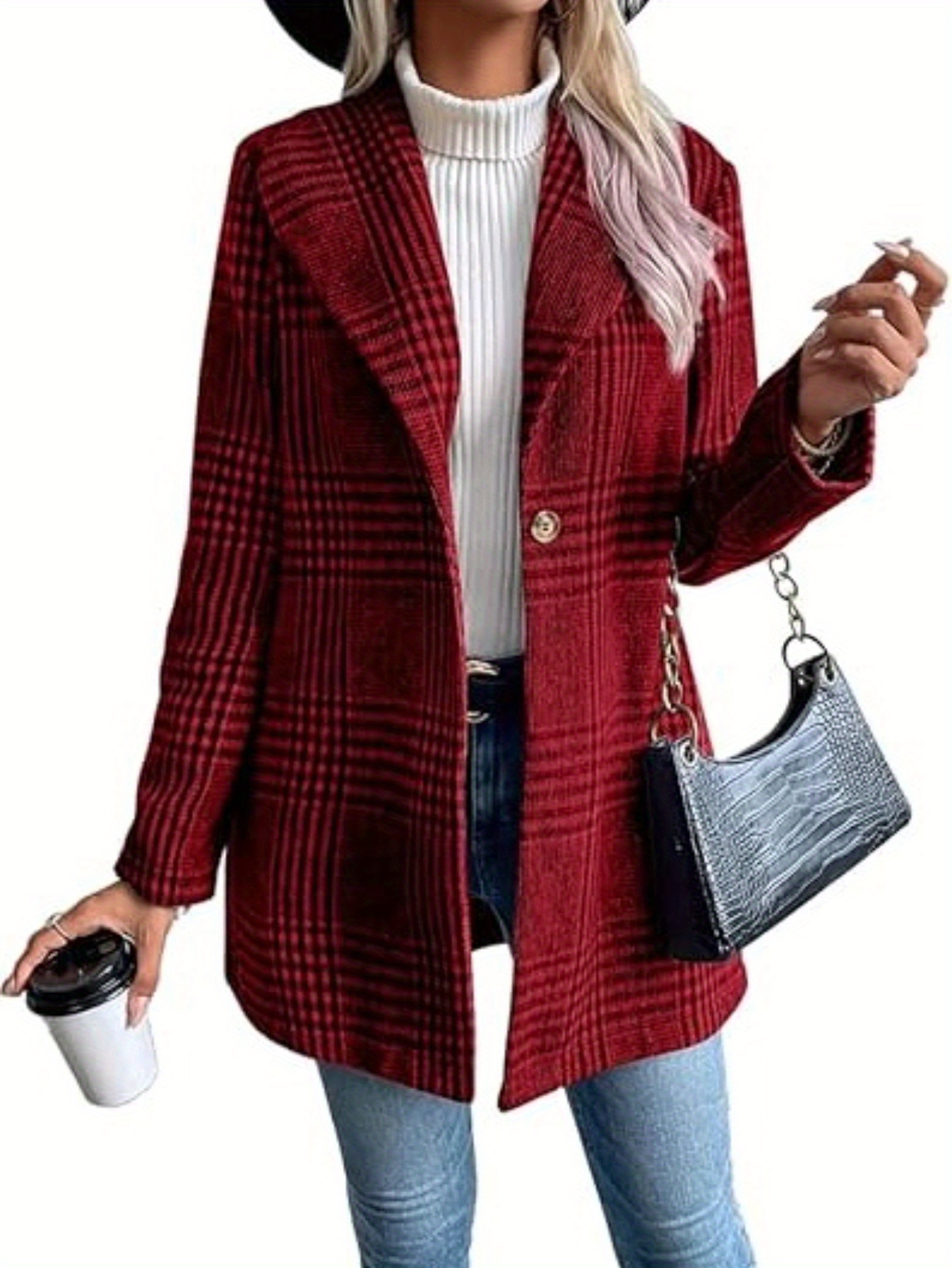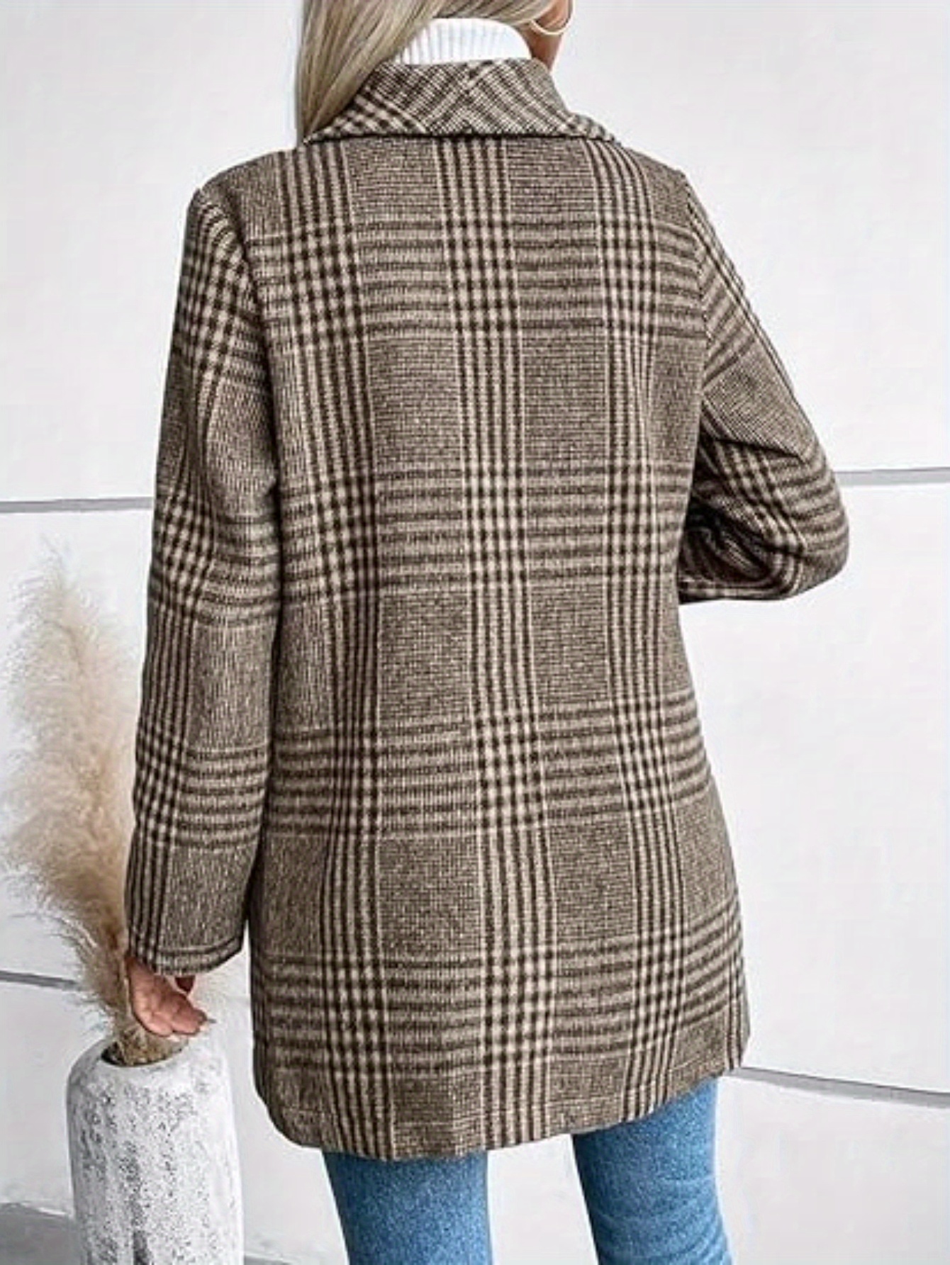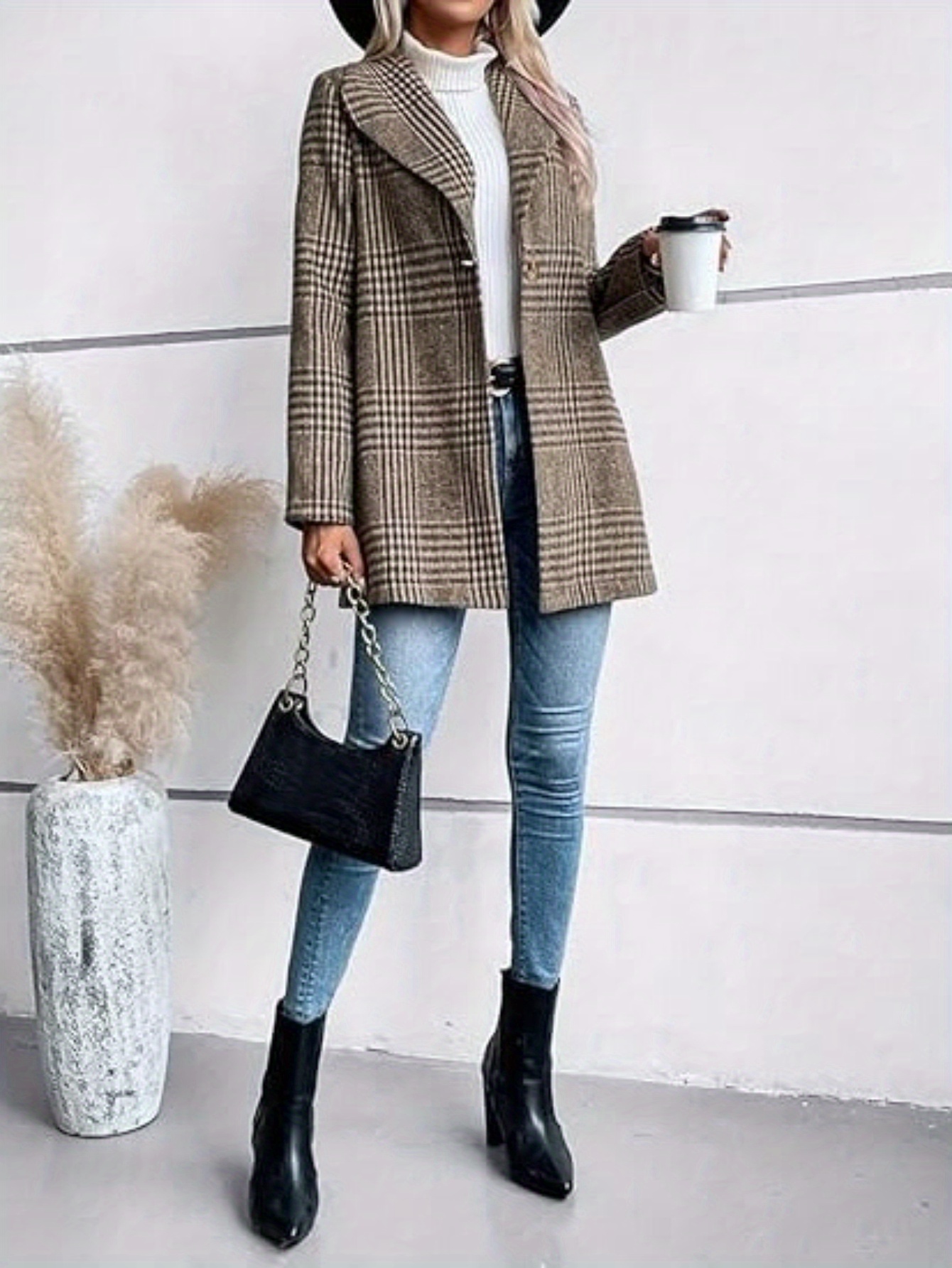 Women’S Slim Fit Plaid Coat – Casual Long Sleeve Button-Up with Lapel Collar, Brown & White Checkered Pattern, Perfect for Fallu002FWinter, Stylish Outerwear | Checkered Pattern Coat | Buttonup Coat