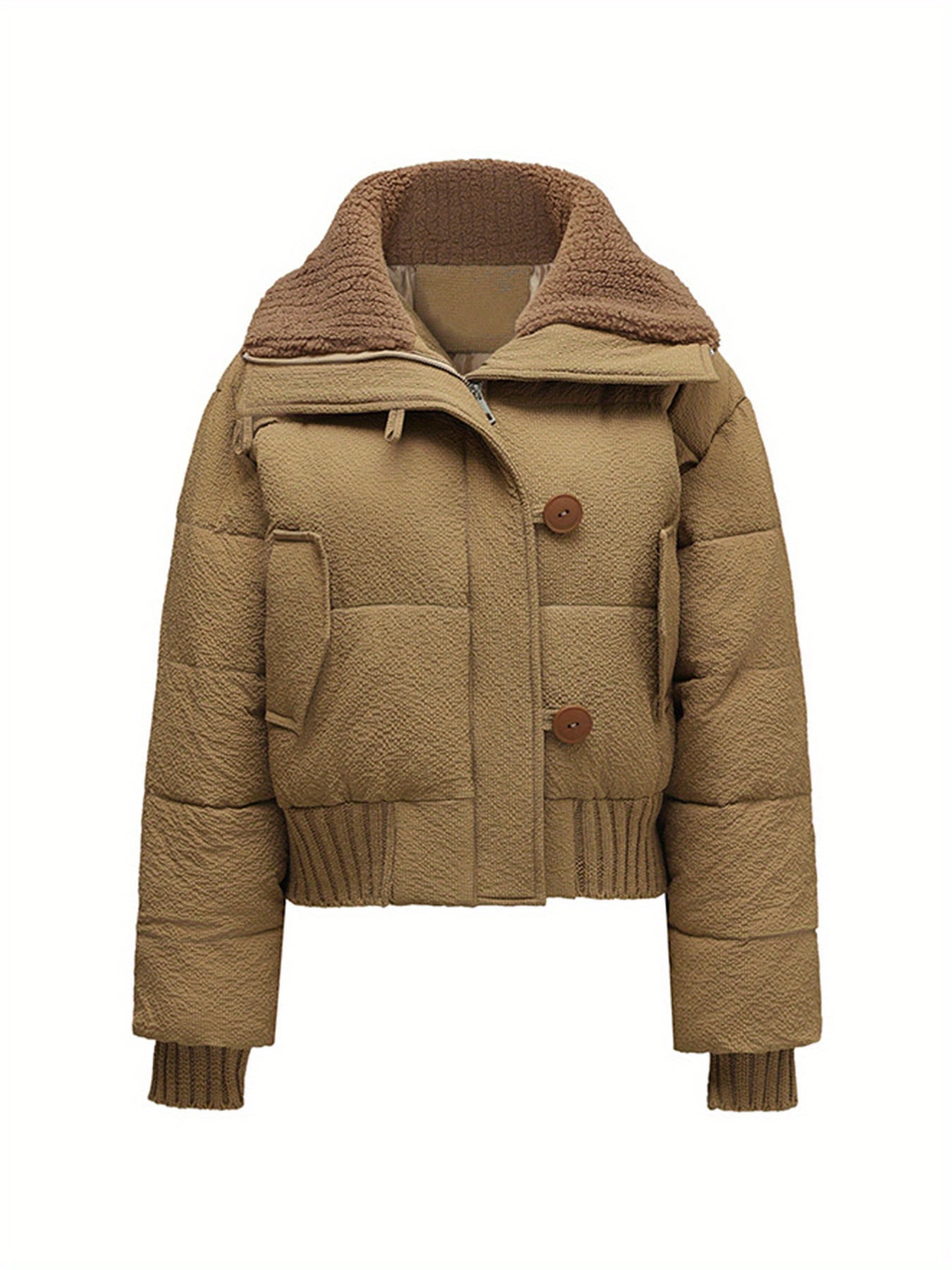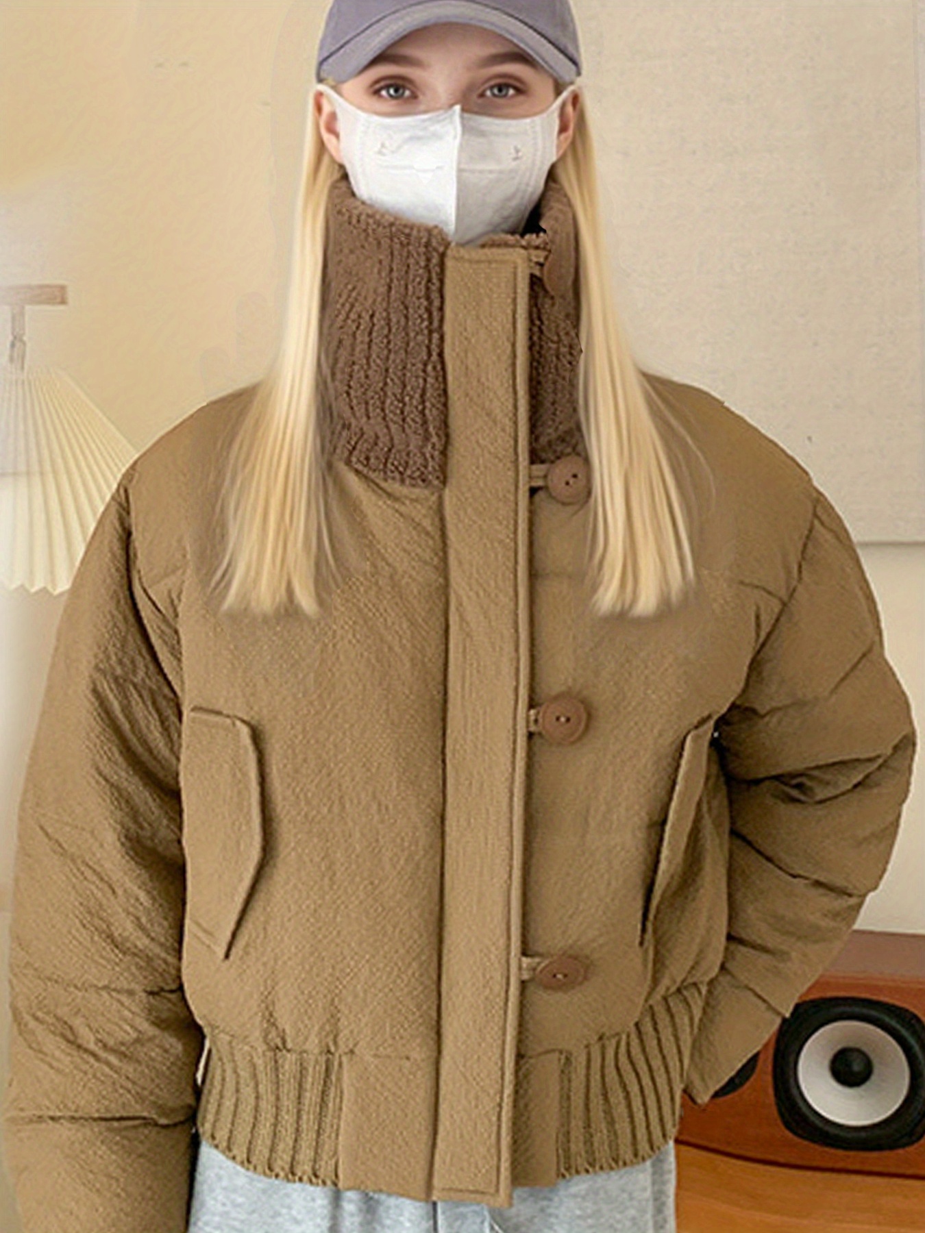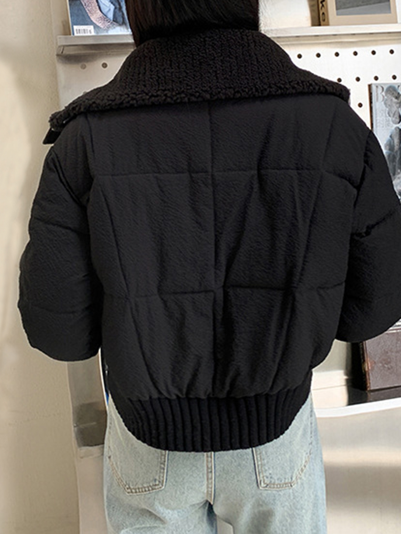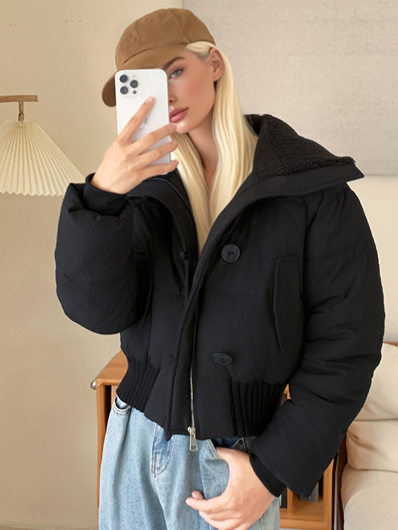 Women’s Thick Short Waistcoat Coat – High-Waisted Casual Winter Jacket with Pockets, Short Length & Warmth, Machine Washable Solid Black Outerwear for Everyday Layering (No Belt, Straight Sleeve Design)
