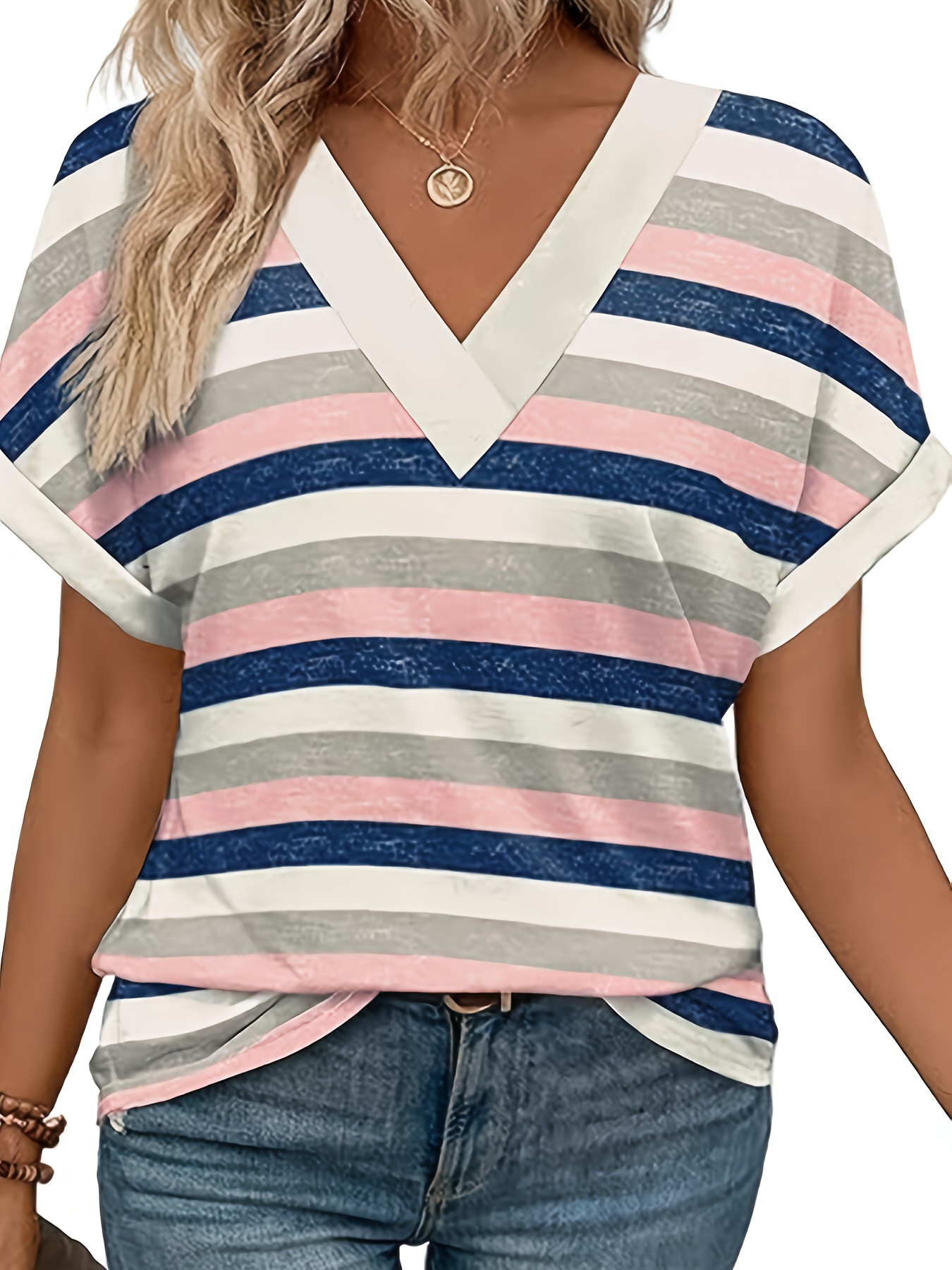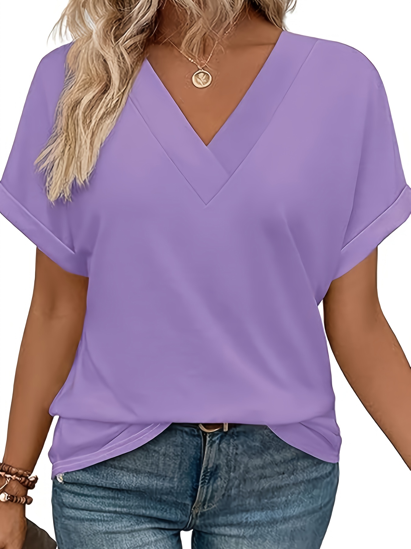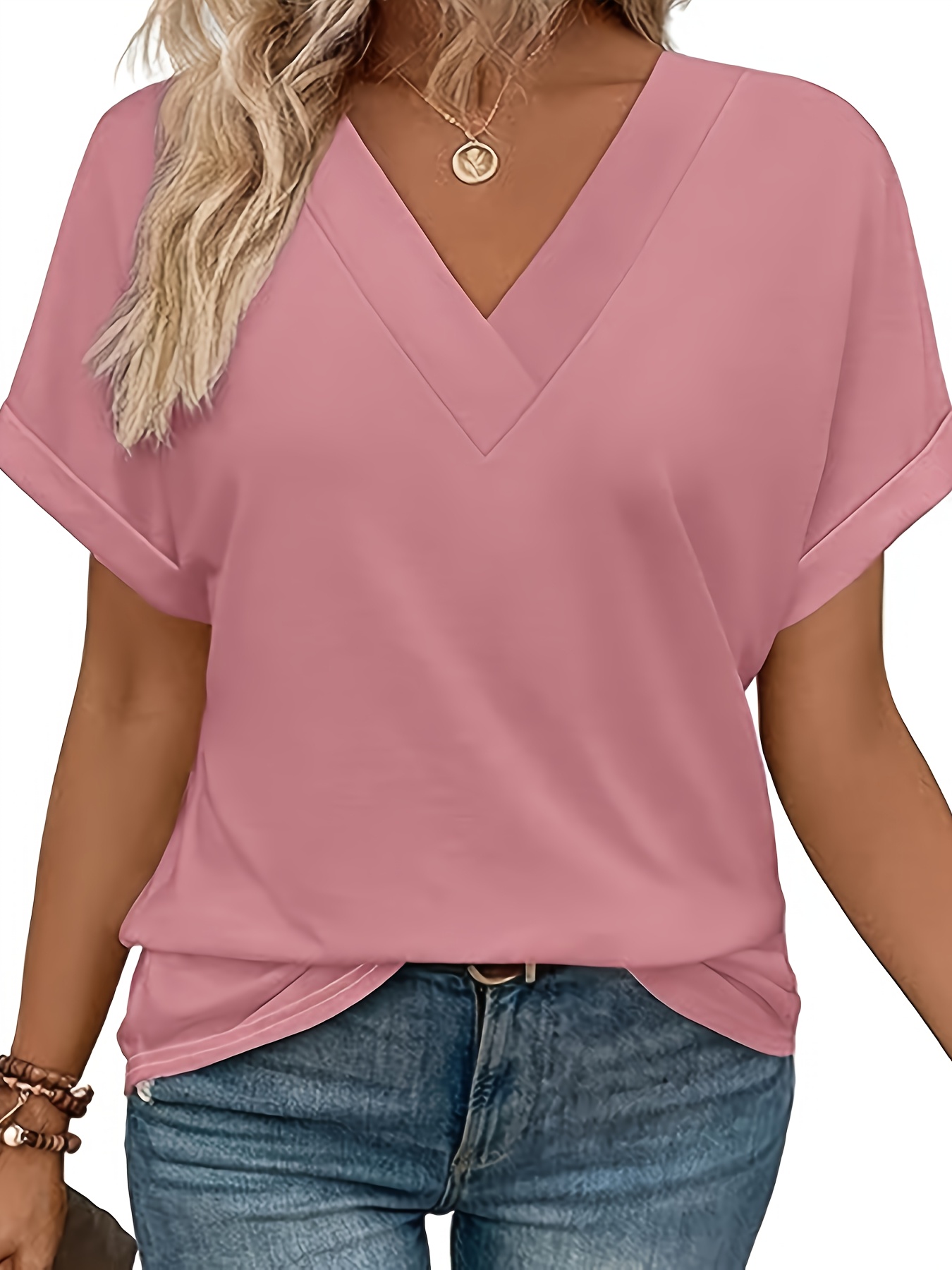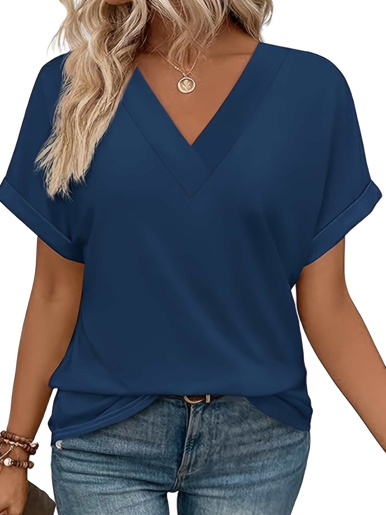 Women’S Tops Short Bat Sleeve Shirt Fashionable V-neck Clothing, Casual And Versatile