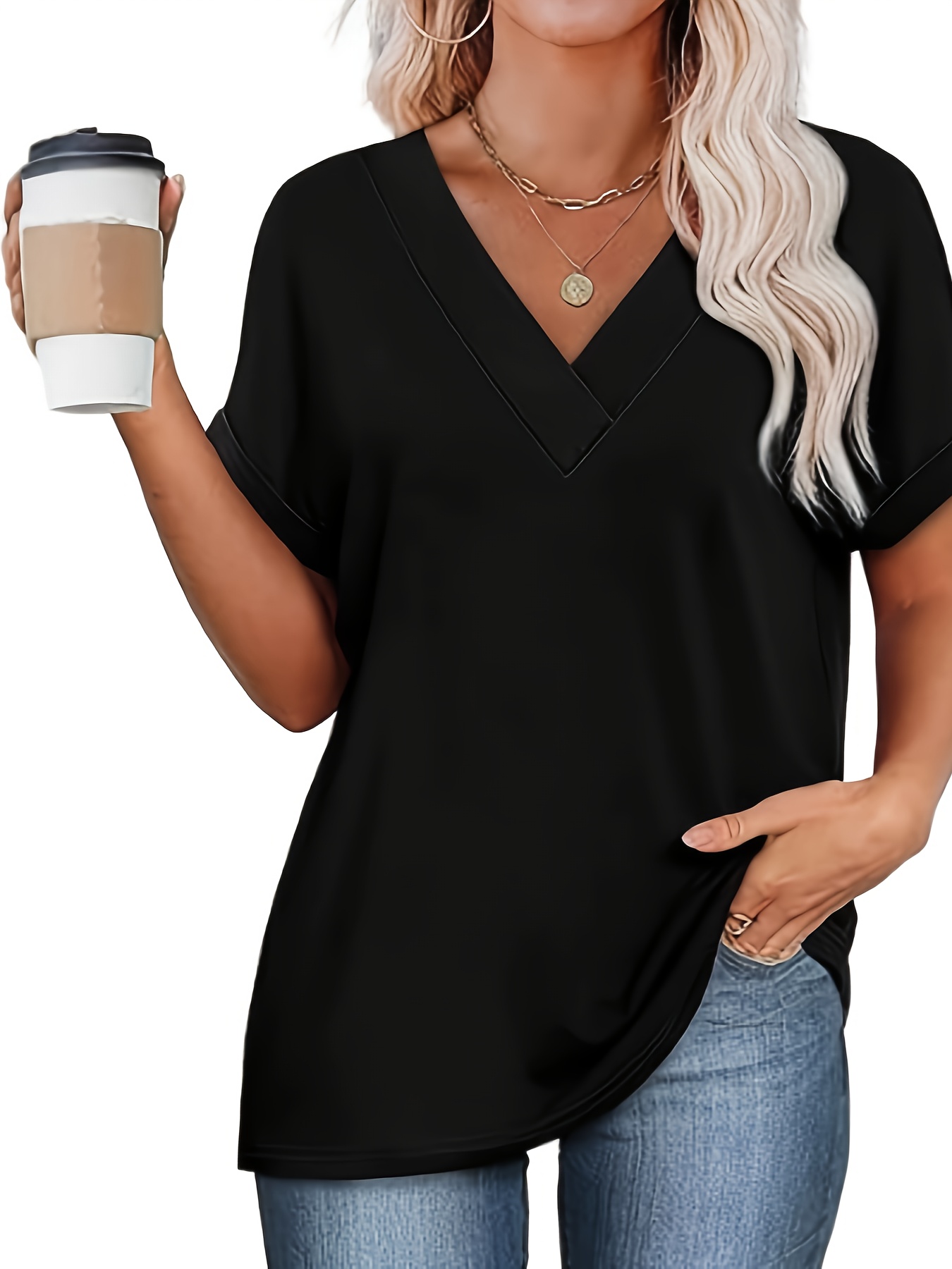 Be the first to review “Women’S Tops Short Bat Sleeve Shirt Fashionable V-neck Clothing, Casual And Versatile”