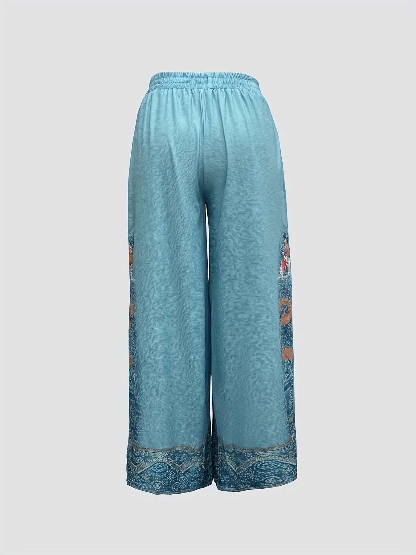 Women’s Vintage Floral Print Wide Leg Pants – Elastic Waist Casual Trousers, Machine Washable Long Length for Spring Summer Fall, Outdoor & Casual Wear, Versatile Trousers, Bohemian Style, Lightweight Fabric, Flowy Trousers, Boho Chic Style