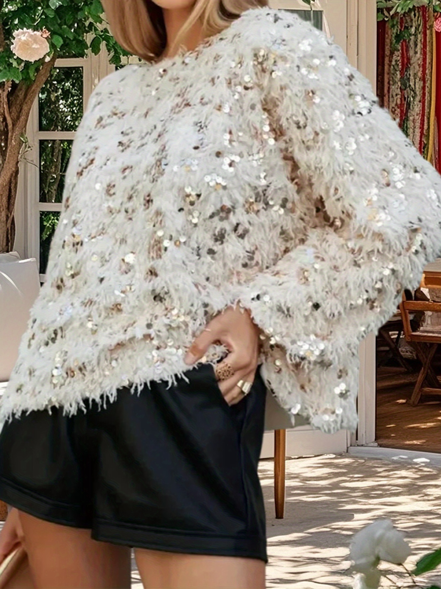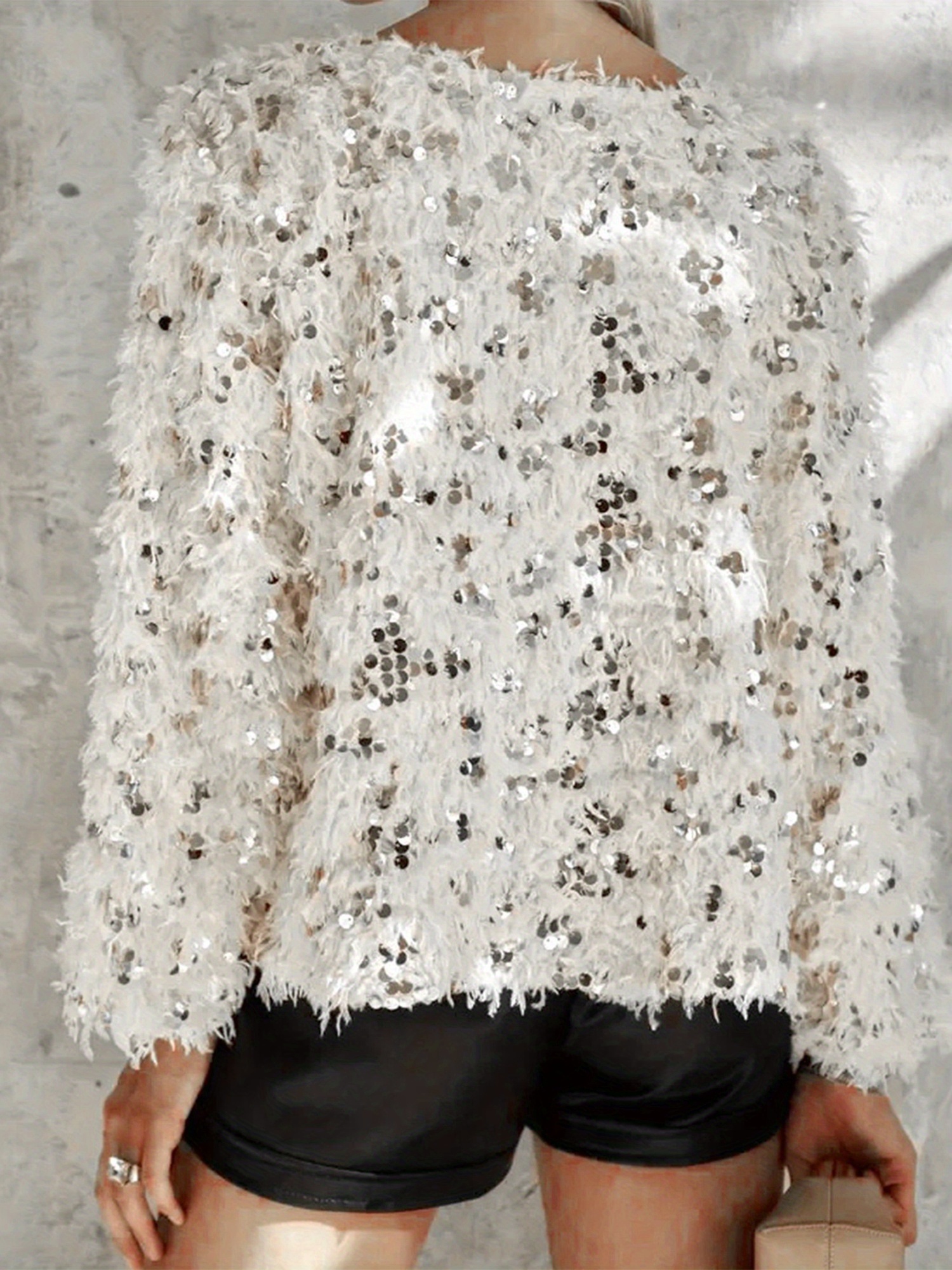Be the first to review “Women’s Y2K Sparkling Sequin Sweater with Tassel Hem & Fringe Sleeve Details – Loose Fit Crew Neck Long Sleeve Pullover, All-Season Party & Everyday Winter Fall Tops (Hand Washu002FDry Clean) – No-Stretch Fabric”