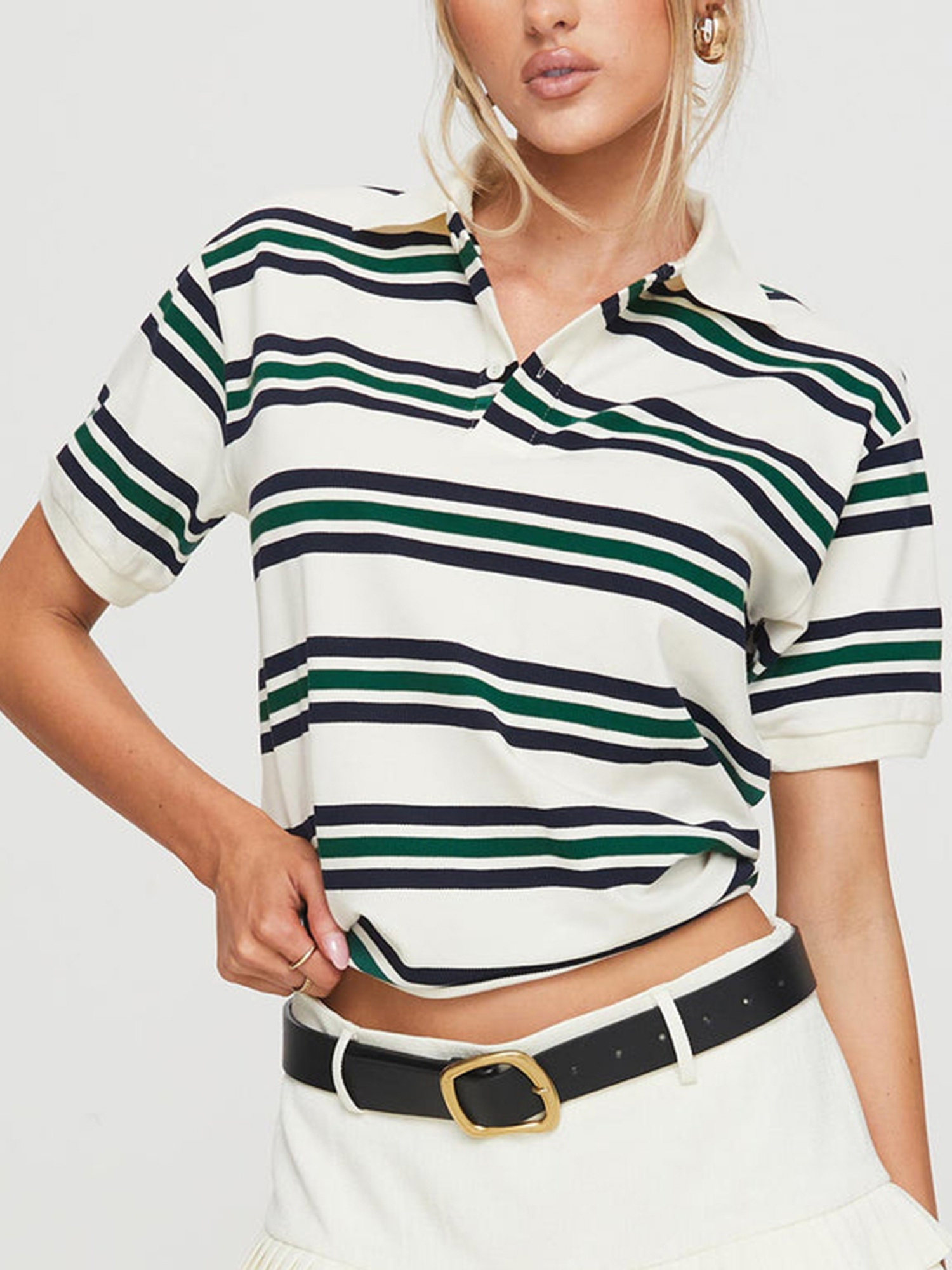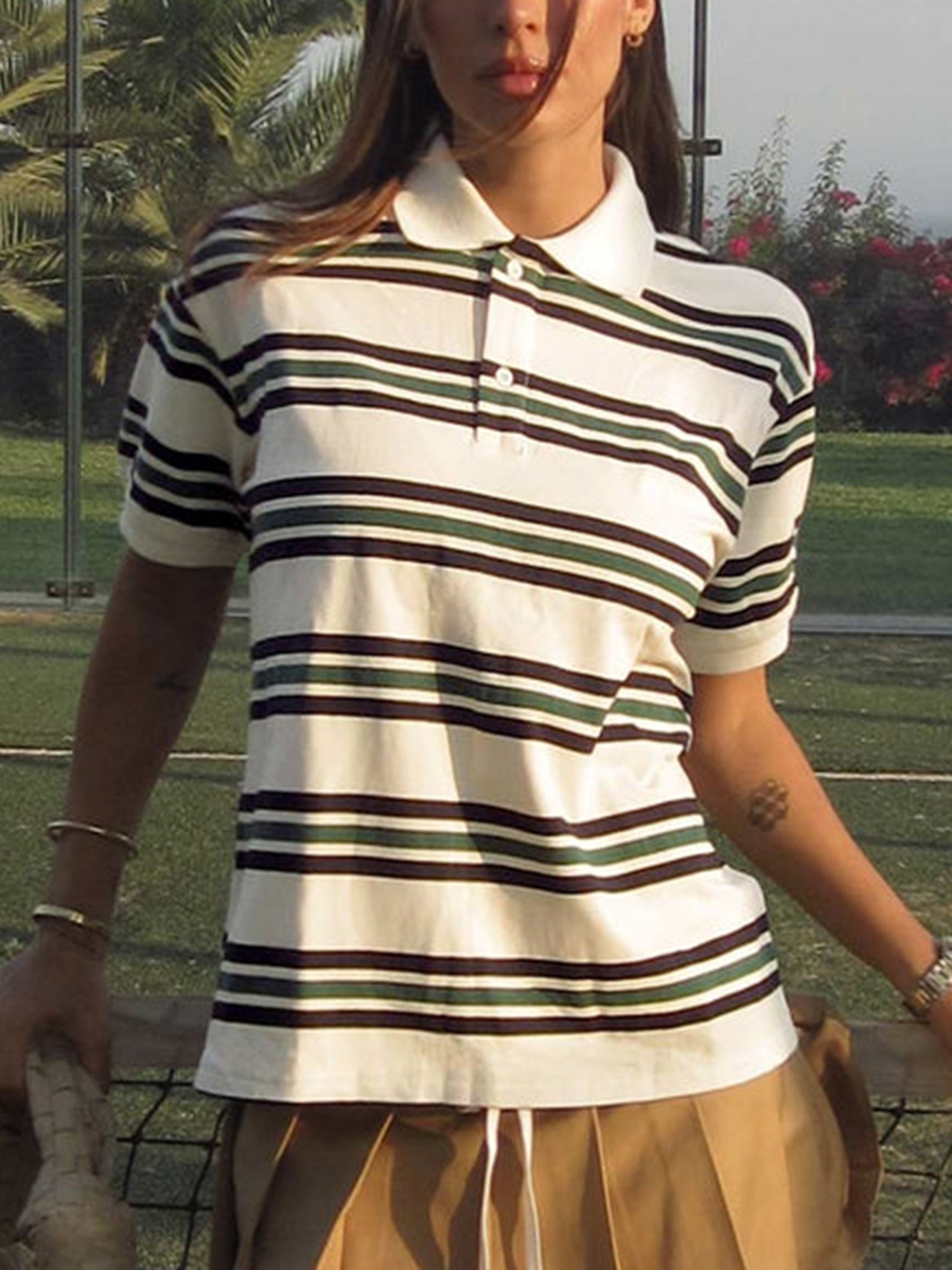 Be the first to review “Women’s Y2K Vintage Striped Crop Top with Lapel Collar – Casual Short Sleeve Shirt in Brown & Light Blue, Non-Stretch Machine Washable Fabric for Spring Summer Fall Streetwear, Teenage Fashion, Soft Texture”